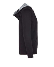- Jersey lined contrasting and matching jersey lined hood & flat drawcords